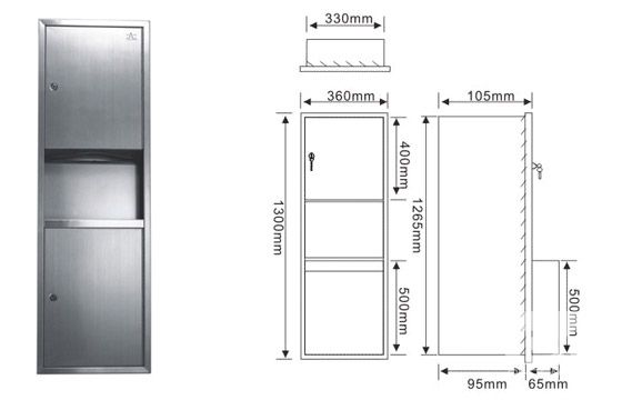 当前位置: > 产品展示 > 卫浴用品系列E > 不锈钢组合型干手柜 > YLE417 不锈钢嵌入式擦手纸盒
